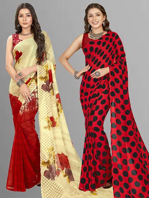 pack of 2 printed casual wear sarees with blouse
