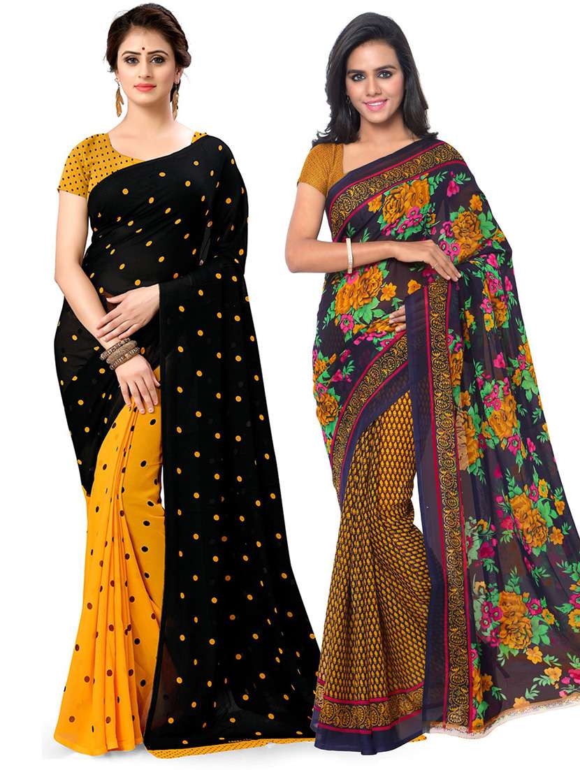 pack of 2 casual wear combo sarees with blouse - 21415460 - Very Small Image - 1