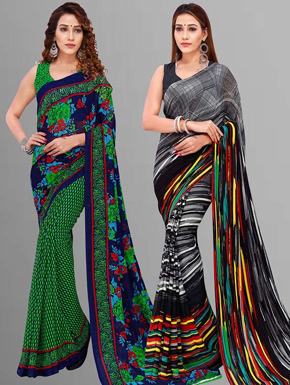 women pack of 2 casual wear sarees with blouse - 21415554 - Very Small Image - 1