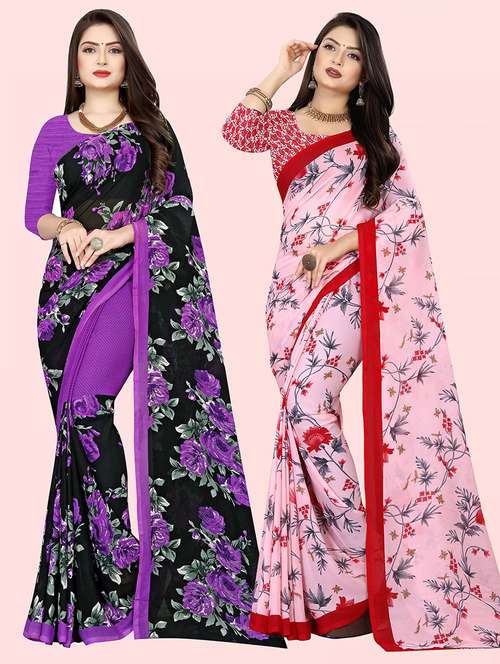 pack of 2 printed casual wear saree with blouse - 21415678 - Very Small Image - 1