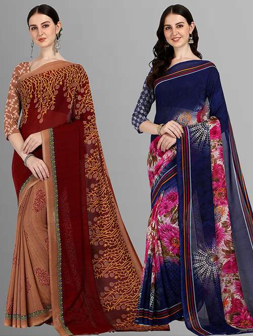 women pack of 2 casual wear sarees with blouse - 21415833 - Very Small Image - 1