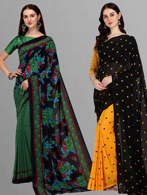 pack of 2 printed casual wear sarees with blouse - 21415850 - Very Small Image - 1