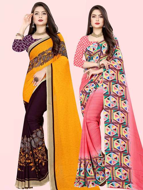women pack of 2 casual wear sarees with blouse - 21415855 - Very Small Image - 1