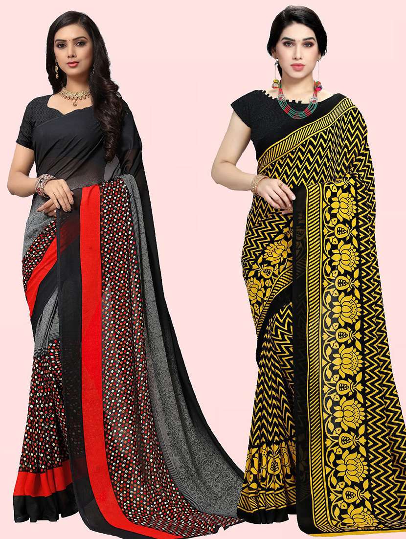 women pack of 2 casual wear sarees with blouse