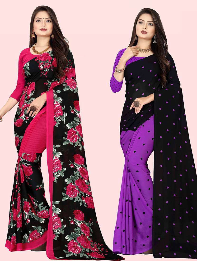 pack of 2 printed sarees with blouse