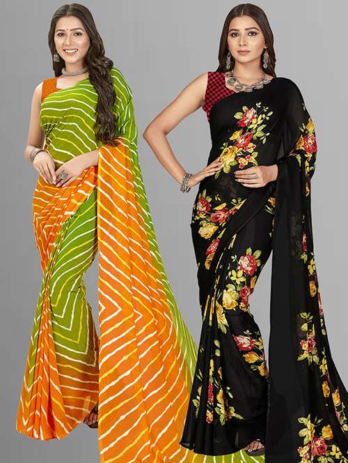 pack of 2 casual wear combo sarees with blouse - 21415982 - Very Small Image - 1