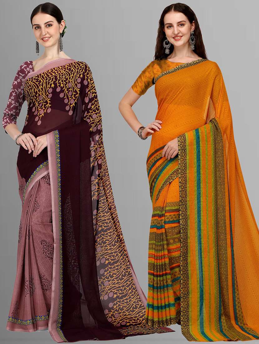 women pack of 2 casual wear sarees with blouse - 21416005 - Very Small Image - 1