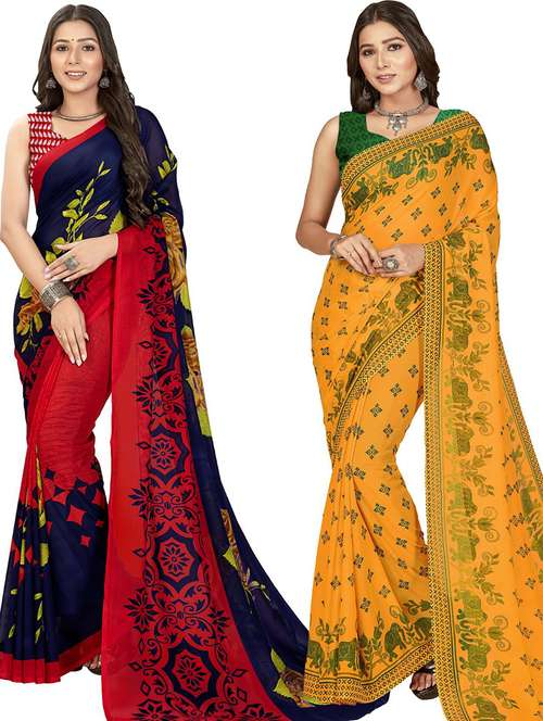 pack of 2 printed sarees with blouse