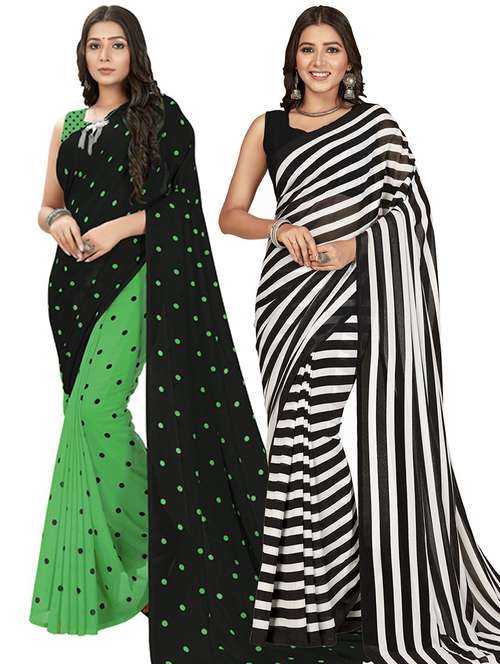 pack of 2 printed casual wear sarees with blouse - 21416185 - Very Small Image - 1
