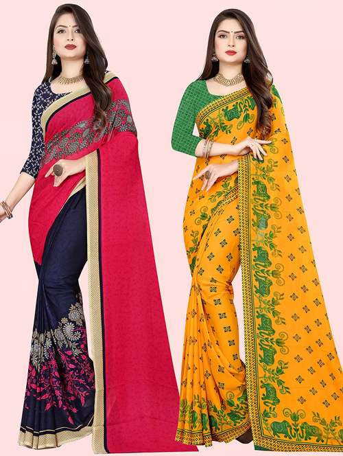 pack of 2 printed casual wear sarees with blouse - 21416189 - Very Small Image - 1