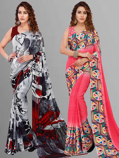 women pack of 2 casual wear sarees with blouse - 21416316 - Very Small Image - 1