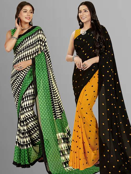 pack of 2 printed casual wear sarees with blouse - 21416459 - Very Small Image - 1