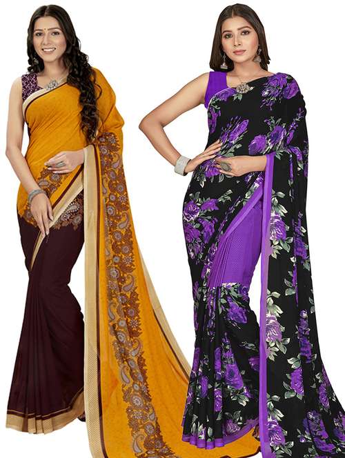 pack of 2 printed sarees with blouse - 21416504 - Very Small Image - 1
