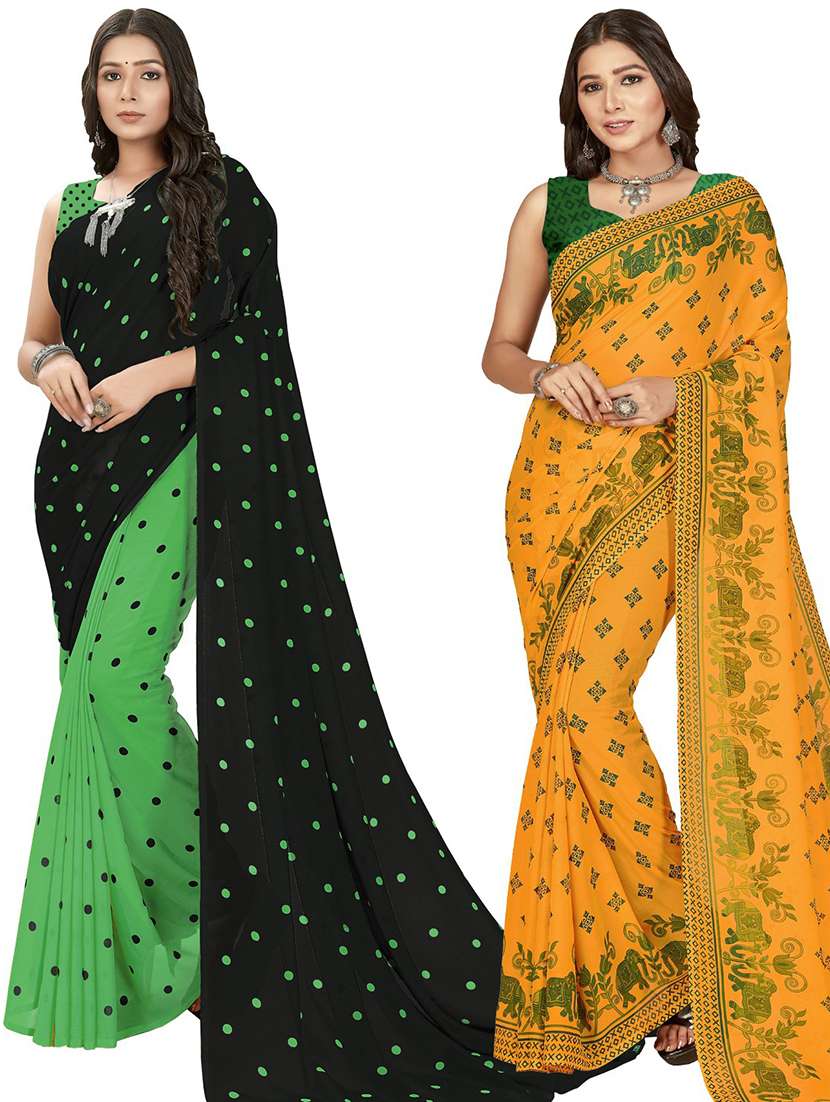 pack of 2 printed casual wear saree with blouse