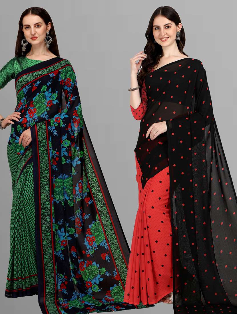 pack of 2 printed sarees with blouse - 21416571 - Very Small Image - 1