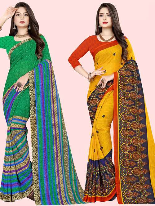 pack of 2 printed casual wear sarees with blouse - 21416613 - Very Small Image - 1
