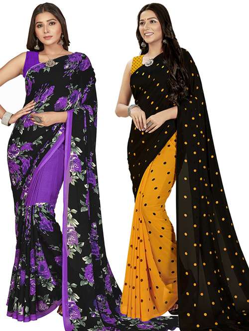women pack of 2 casual wear combo sarees with blouse