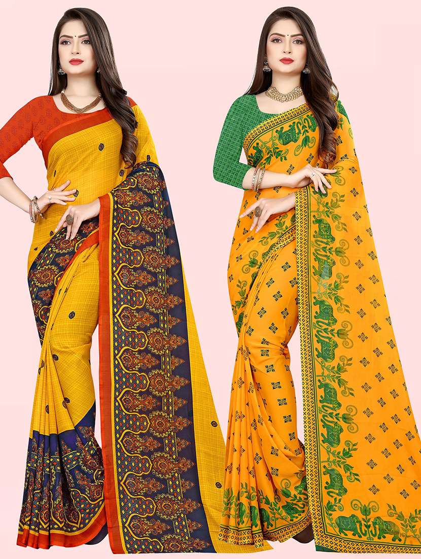 pack of 2 printed casual wear sarees with blouse - 21416906 - Very Small Image - 1