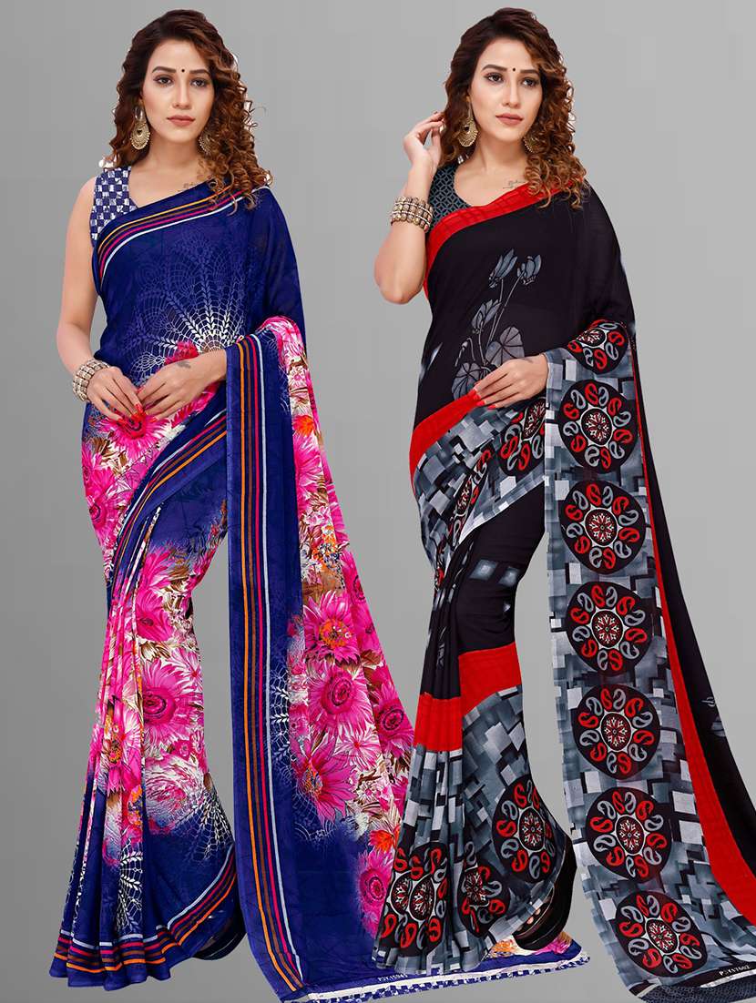 pack of 2 casual wear combo sarees with blouse - 21416914 - Very Small Image - 1