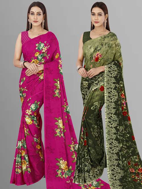 pack of 2 casual wear combo sarees with blouse - 21417118 - Very Small Image - 1