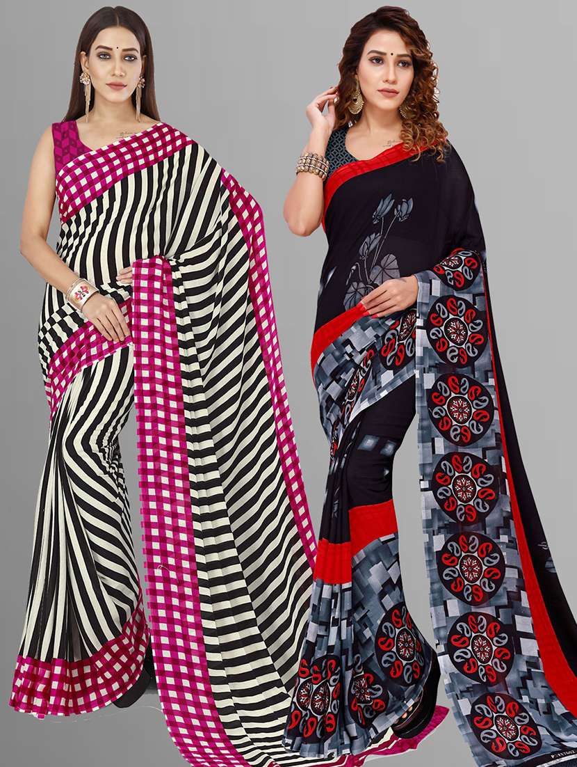 women pack of 2 casual wear combo sarees with blouse