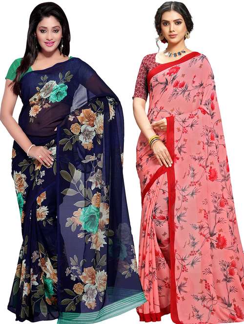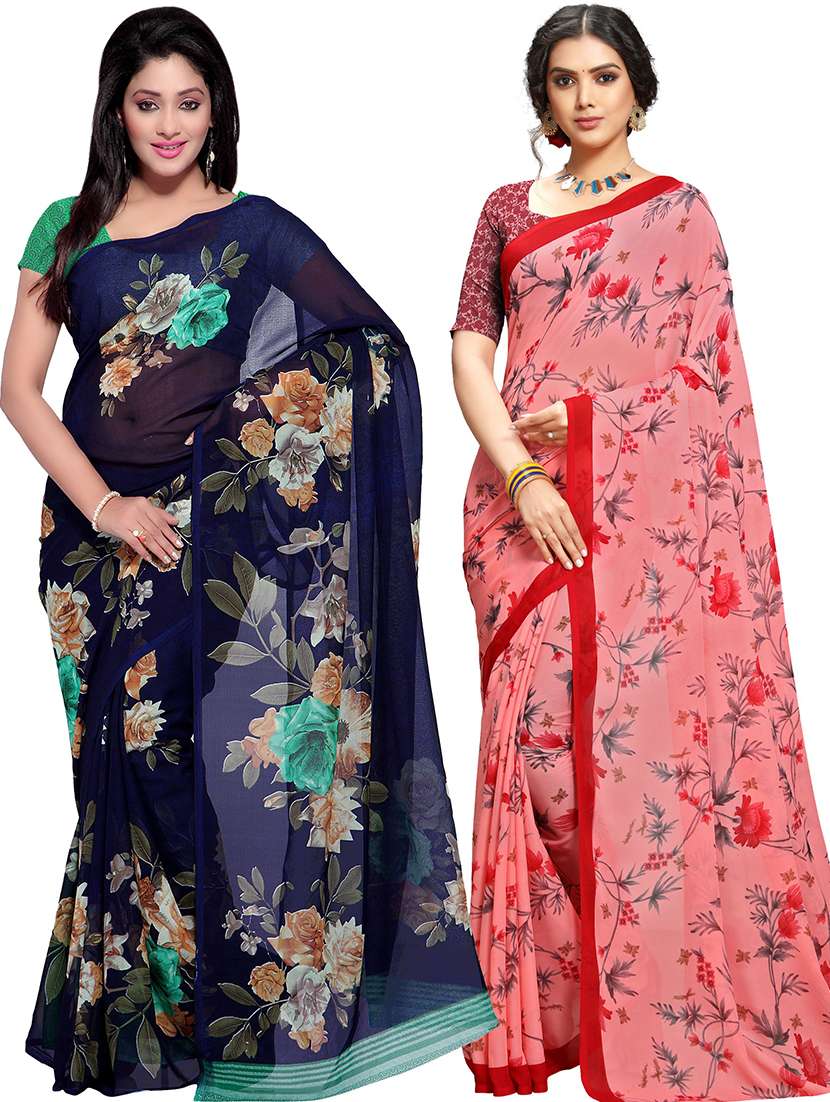 women pack of 2 casual wear combo sarees with blouse