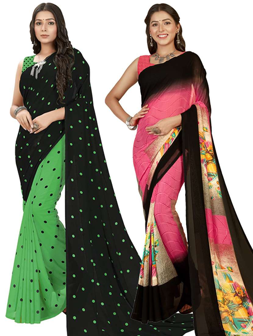 women pack of 2 casual wear combo sarees with blouse