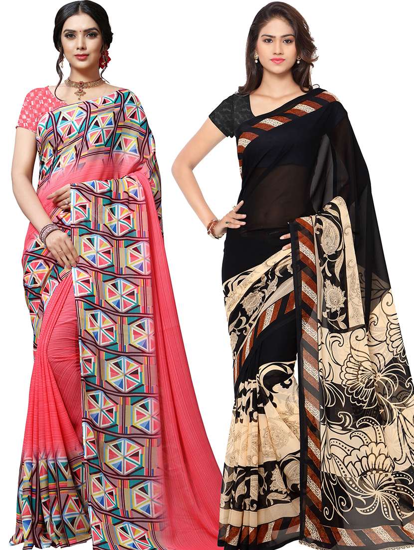women pack of 2 casual wear combo sarees with blouse - 21417616 - Very Small Image - 1