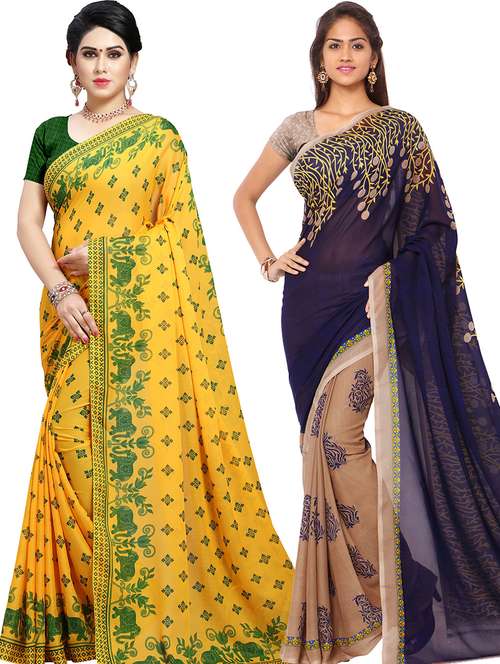 women pack of 2 casual wear combo sarees with blouse - 21417657 - Very Small Image - 1