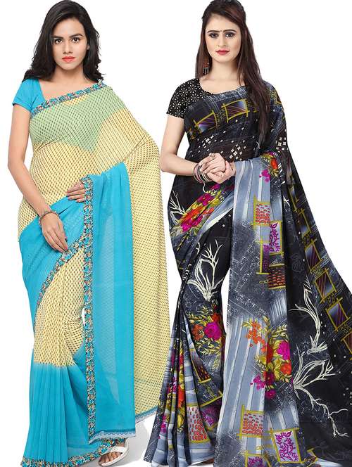 women pack of 2 casual wear combo sarees with blouse - 21417917 - Very Small Image - 1