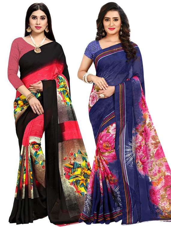 women pack of 2 casual wear combo sarees with blouse - 21417963 - Very Small Image - 1