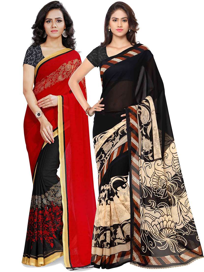 women pack of 2 casual wear combo sarees with blouse - 21418108 - Very Small Image - 1