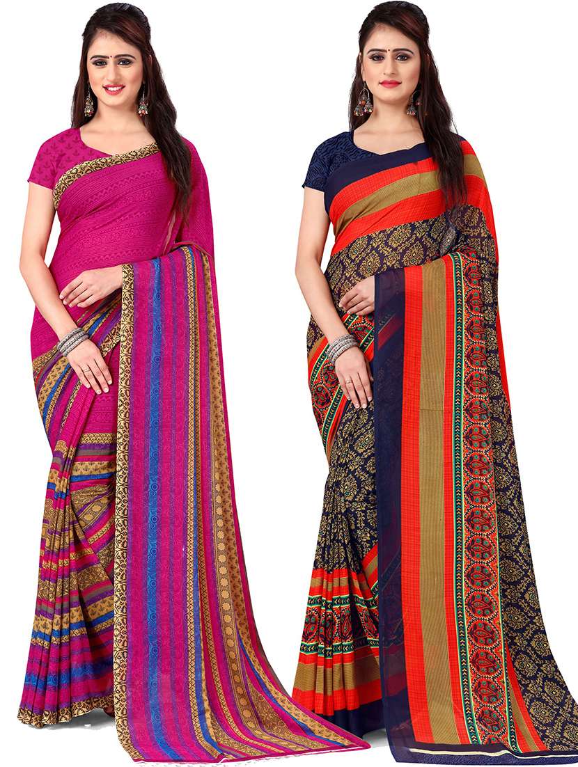 women pack of 2 casual wear combo sarees with blouse - 21418322 - Very Small Image - 1