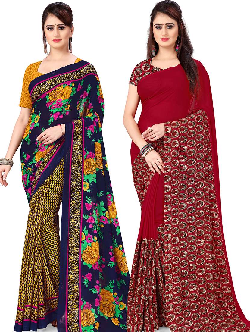 women pack of 2 casual wear combo sarees with blouse - 21418351 - Very Small Image - 1