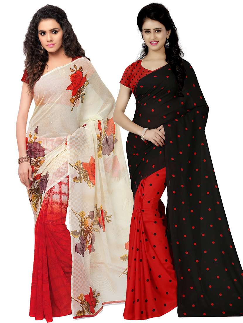 pack of 2 casual wear combo sarees with blouse - 21418467 - Very Small Image - 1