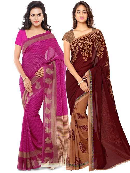 pack of 2 casual wear combo sarees with blouse - 21418772 - Very Small Image - 1