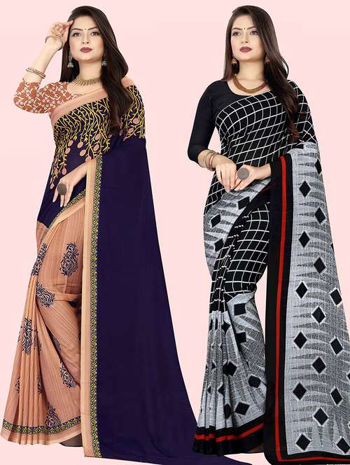 pack of 2 printed casual wear sarees with blouse - 21425033 - Very Small Image - 1