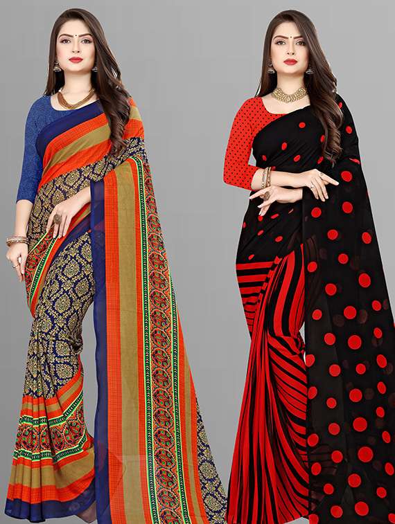 women pack of 2 casual wear combo sarees with blouse - 21425040 - Very Small Image - 1