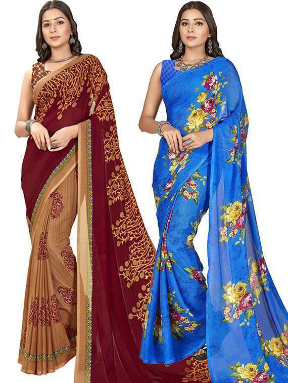 women pack of 2 casual wear combo sarees with blouse