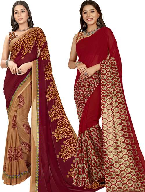 women pack of 2 casual wear combo sarees with blouse - 21425058 - Very Small Image - 1
