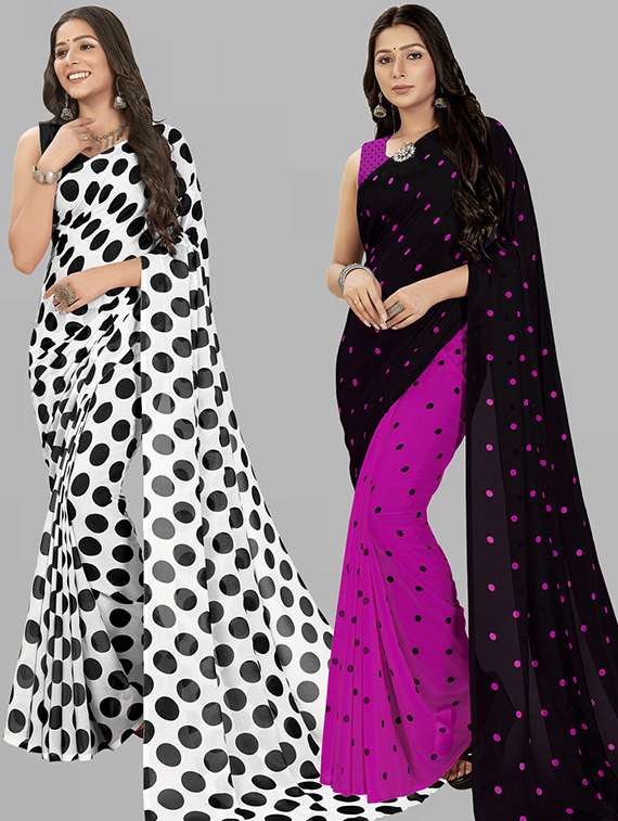 pack of 2 printed casual wear sarees with blouse - 21425301 - Very Small Image - 1