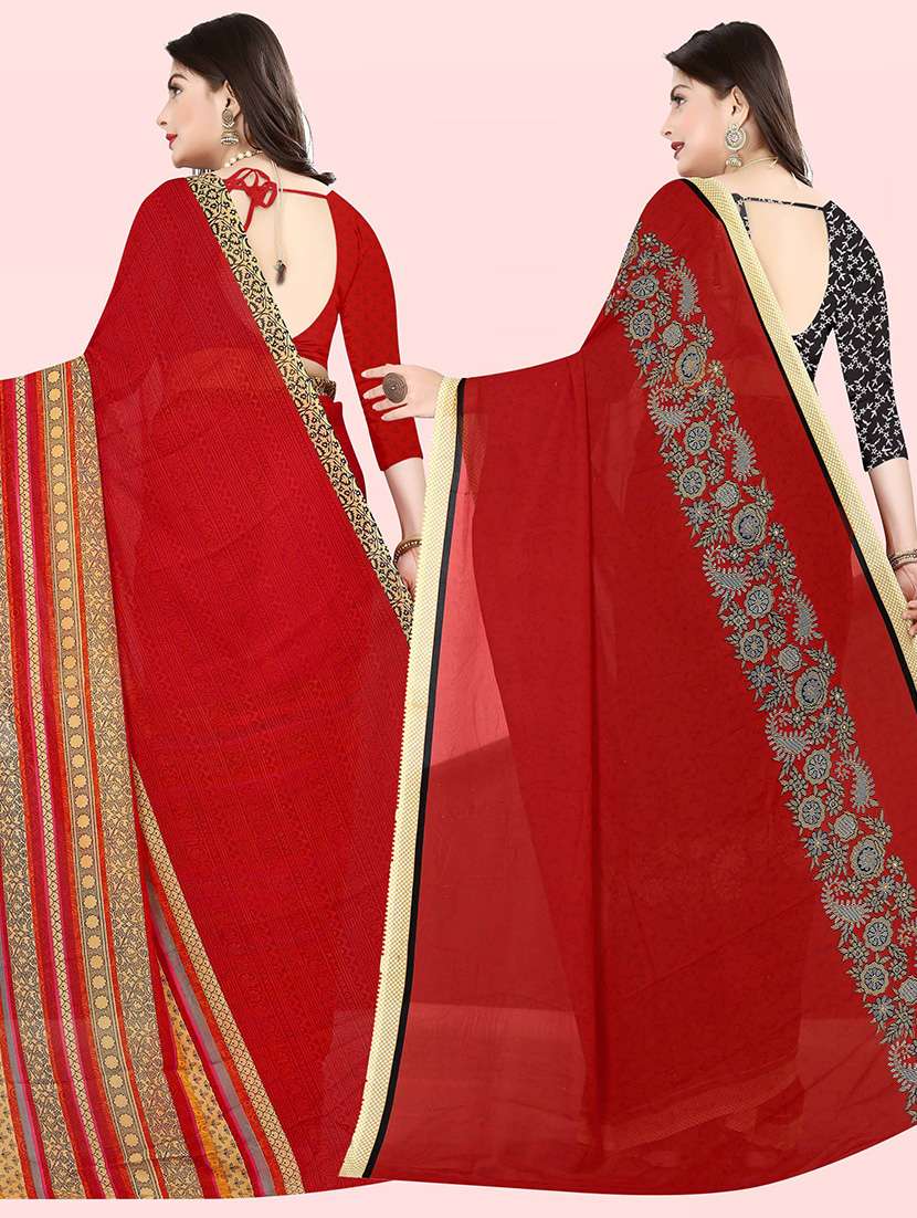 women pack of 2 casual wear combo sarees with blouse
