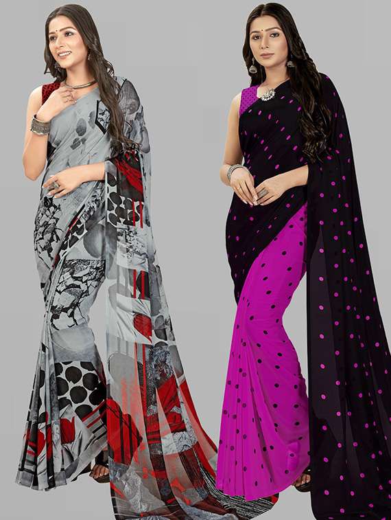 women pack of 2 casual wear combo sarees with blouse