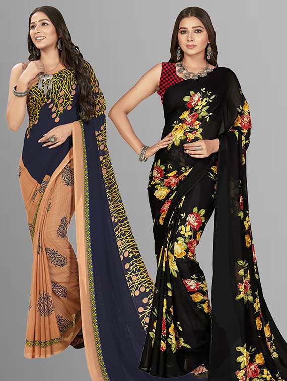 pack of 2 printed casual wear sarees with blouse