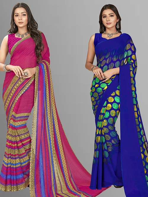 women pack of 2 casual wear combo sarees with blouse - 21425657 - Very Small Image - 1