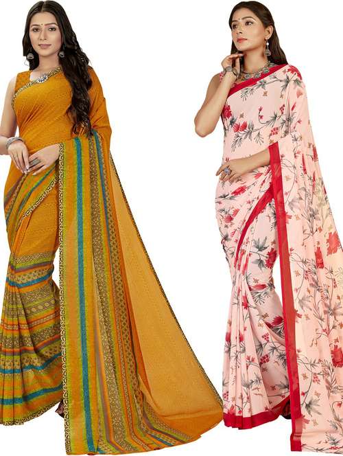 women pack of 2 casual wear combo sarees with blouse