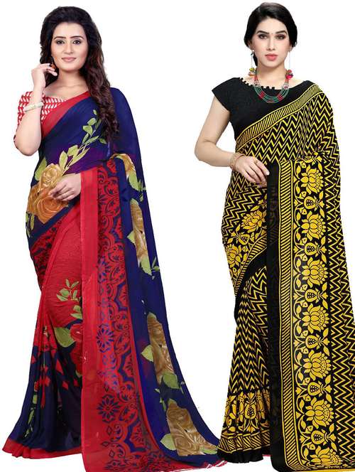 women pack of 2 casual wear combo sarees with blouse - 21425823 - Very Small Image - 1