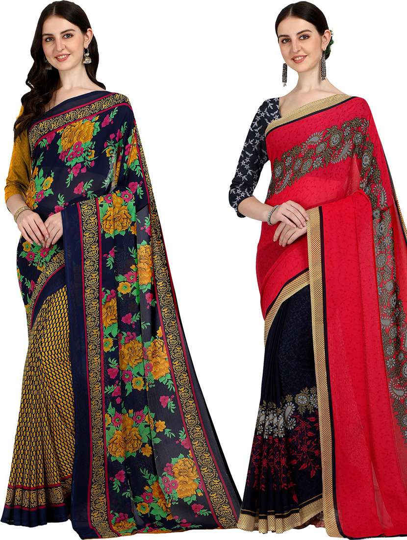 women pack of 2 casual wear combo sarees with blouse - 21425886 - Very Small Image - 1