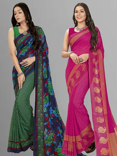 women pack of 2 casual wear combo sarees with blouse - 21425945 - Very Small Image - 1