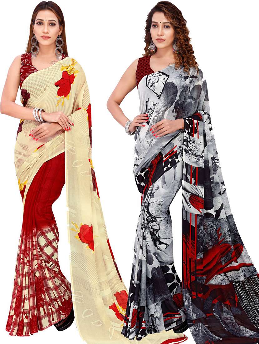women pack of 2 casual wear combo sarees with blouse - 21425950 - Very Small Image - 1